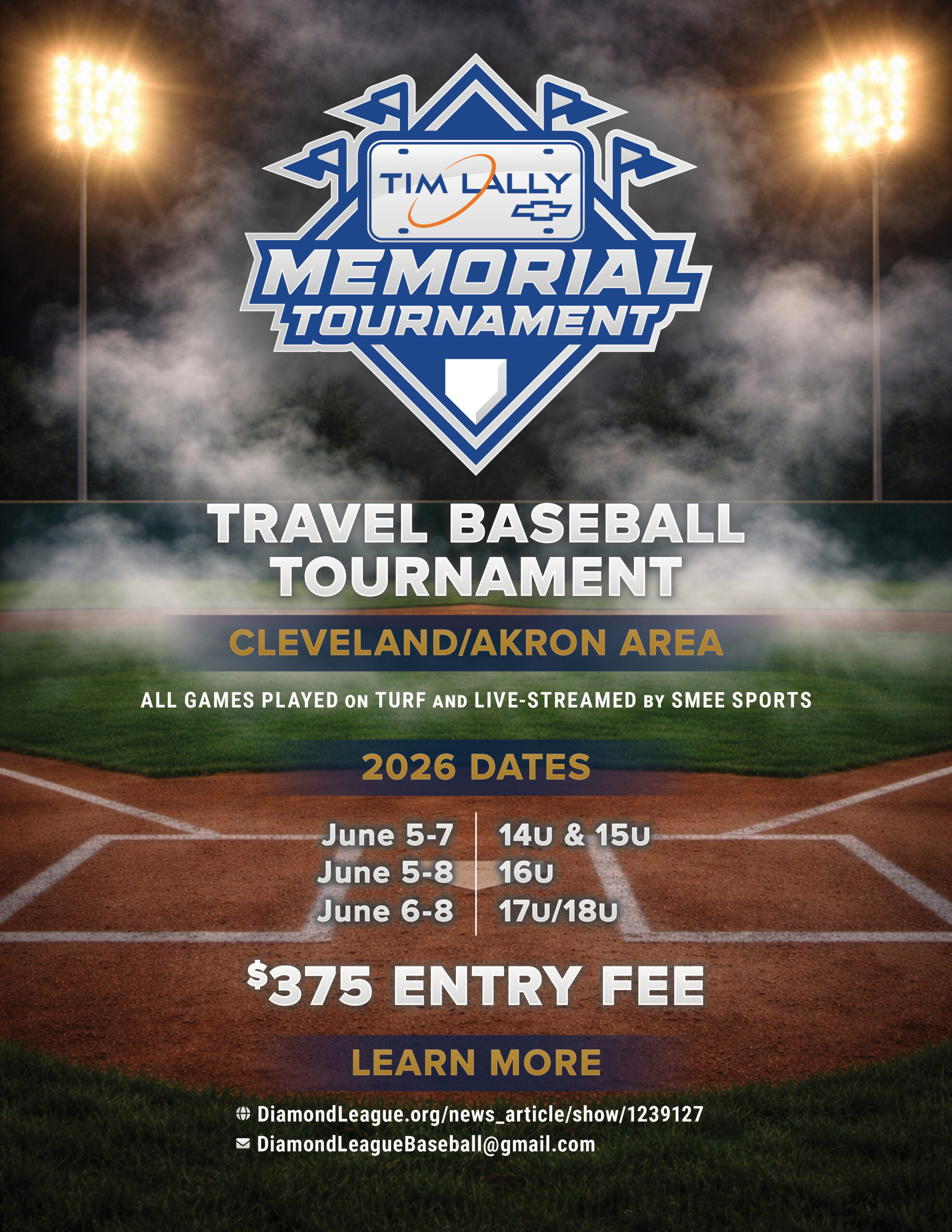Promote your baseball tournament directly to players, coaches, and parents across Ohio. For just $50 per event, your listing will appear on the Tournaments webpage — complete with a event graphic and a direct link to your external website or registration page.